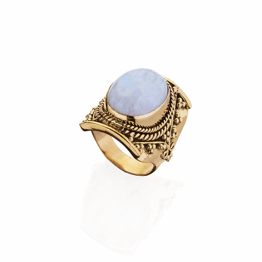 The Muse Ring is a captivating piece designed to make a statement wherever you go. Hand- crafted by skilled artisans, this ring is available in both 14K gold-plated brass and pure brass versions, showcasing a mesmerizing moonstone glow that mirrors your boundless beauty.